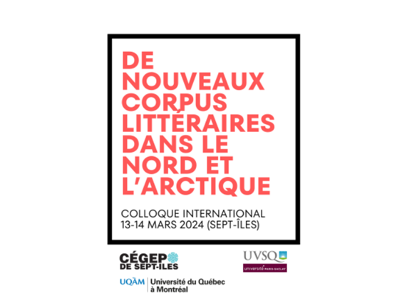 An international colloquium on "De nouveaux corpus littéraires dans le Nord et dans l’Arctique" ("New Bodies of Literature in the North and the Arctic") will take place on 14-15 March 2024 at Cégep de Sept-Iles (Québec). Deadline for submission of papers is 11 December 2023.